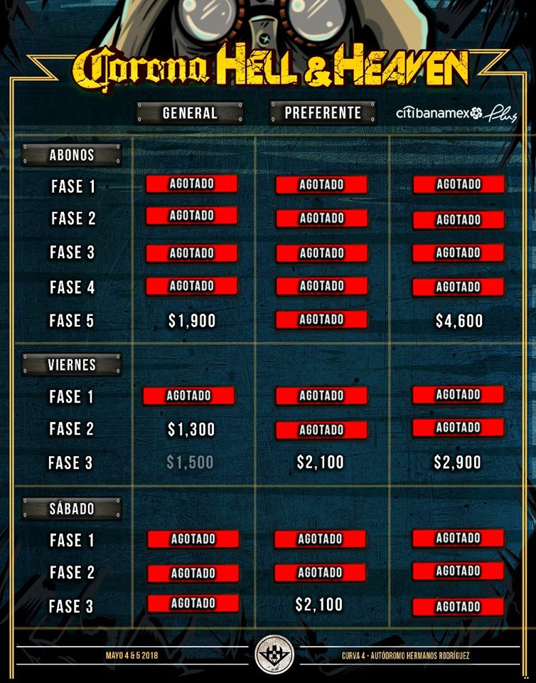 Para más información sobre el festival, como la aplicación, los objetos permitidos y no, la renta de lockers, estacionamiento y más detalles, ve a http://www.hellandheavenfest.com/, www.facebook.com/hellandheavenmetalfest/ y @hhfest.
