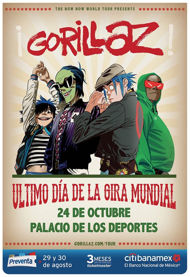 A poco más de medio año de ofrecer una gran dosis de su brebaje ótico preparado con beats, rap, hip hop y rock en tierra azteca, la banda virtual Gorillaz regresa para ofrecer una nueva oportunidad a sus fans de bailar con ellos y dar por concluida su gira The Now Now World Tour.