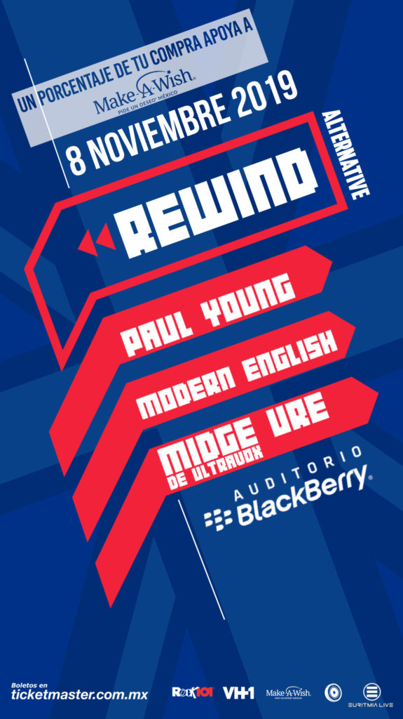 Bajo el título Rewind Alternative, Paul Young, Midge Ure y Modern English, íconos del new wave británico, presentarán este espectáculo por primera vez en México este viernes 8 de noviembre en el Auditorio BlackBerry.