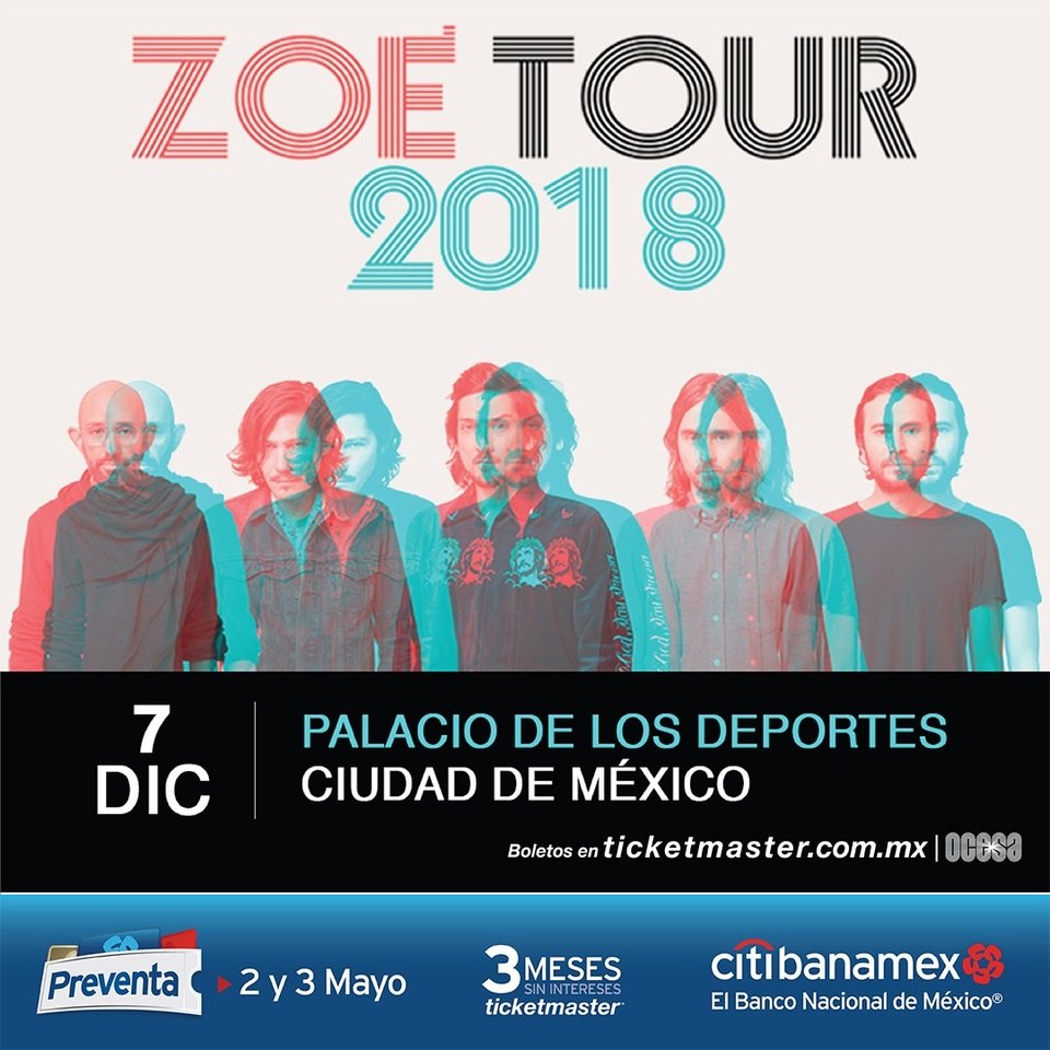 Zoé volverá a la Ciudad de México el 7 de diciembre para ofrecer un concierto en el Palacio de los Deportes, en tanto, continuará su gira por el resto de la República Mexicana, con las siguientes fechas y plazas:
