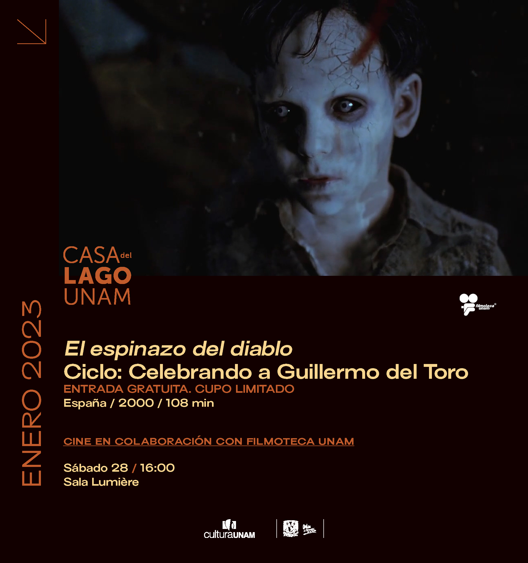 En el último fin de semana de enero, será turno de El Espinazo del Diablo (España, 2000), el cual se proyectará el 28 de enero a las 16:00 horas. La historia de este largometraje se sitúa en 1939, una vez finalizada la guerra civil, “Carlos, un niño de 10 años, llega a un orfanato que acoge a huérfanos de víctimas republicanas. “Su presencia alterará la rutina diaria de un colegio dirigido por Carmen y cuyo profesor, el señor Casares, simpatiza con la perdida causa republicana. Además, lo acechará el fantasma de uno de los antiguos ocupantes del orfanato”.