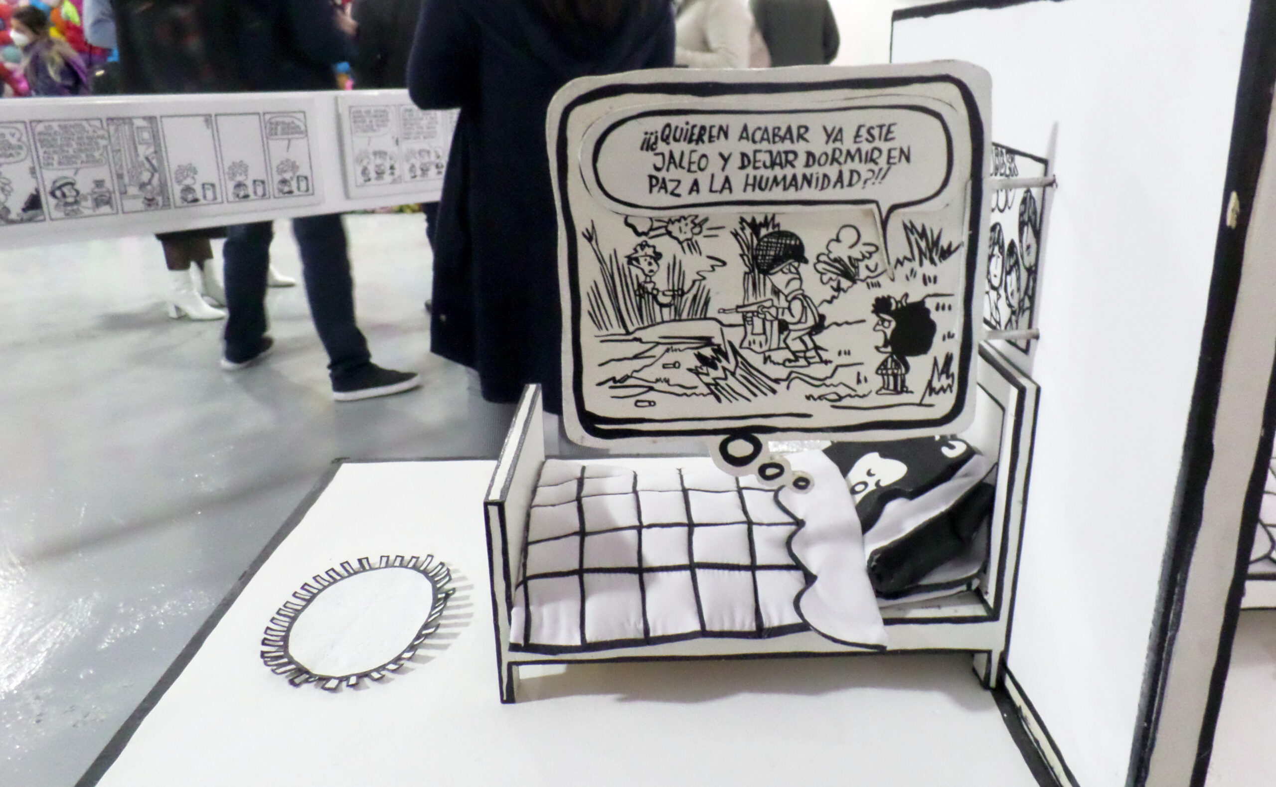 - Desde viñetas hasta escenarios que recrean la recámara de Mafalda puedes encontrar en la exhibición interactiva. Foto Ok_Tania