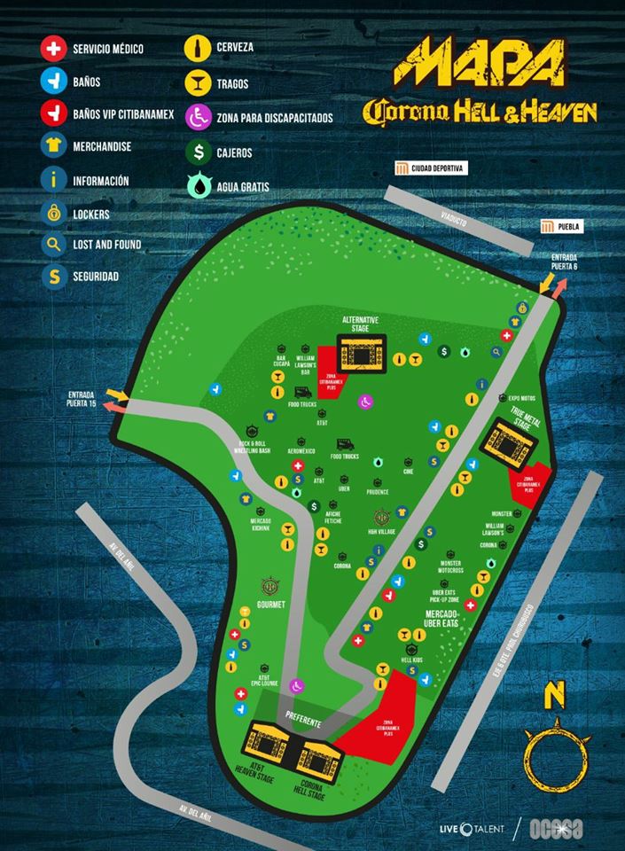 Para más información sobre el festival, como la aplicación, los objetos permitidos y no, la renta de lockers, estacionamiento y más detalles, ve a http://www.hellandheavenfest.com/, www.facebook.com/hellandheavenmetalfest/ y @hhfest.