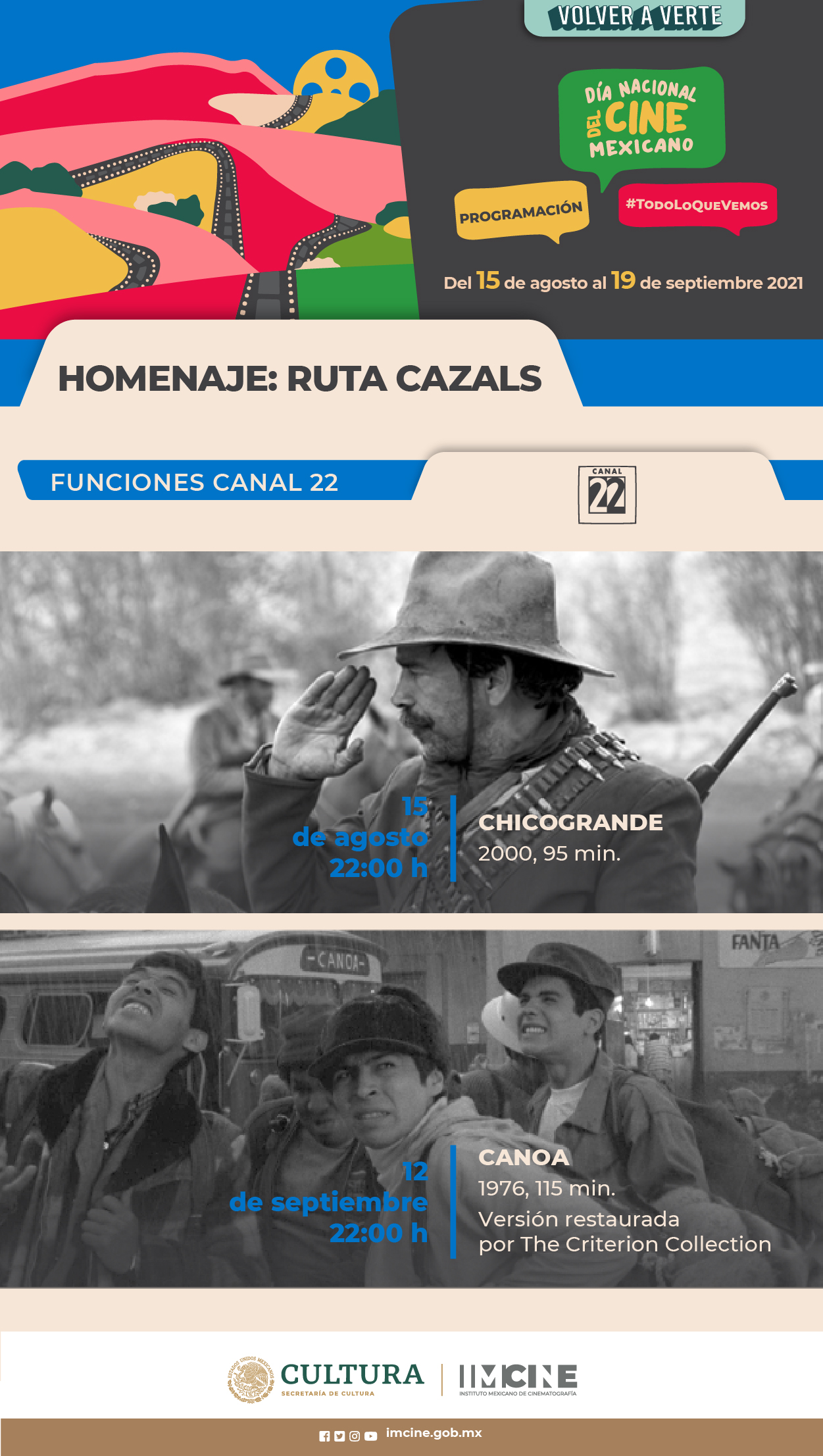 El Día Nacional de Cine Mexicano será inaugurado con el primer evento del Ciclo Ruta Cazals que consiste en una charla entre Felipe Cazals y Everardo González, que será transmitida este domingo a las 18:30 horas por Canal 22 y a través de redes sociales del canal del Imcine.