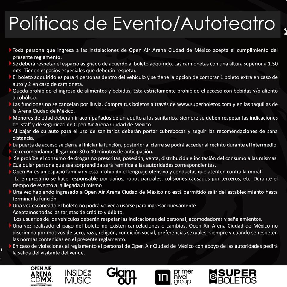 Actualización. La Ciudad de México es testigo del regreso paulatino de las actividades de la industria del entretenimiento, pero bajo el formato Open Air. Así la Arena Ciudad de México ofrece una alternativa para disfrutar de eventos musicales, teatrales y cinematográficos desde un auto, lo que permite salvaguardar la salud de asistentes y trabajadores en el marco de la pandemia por Covid-19.
