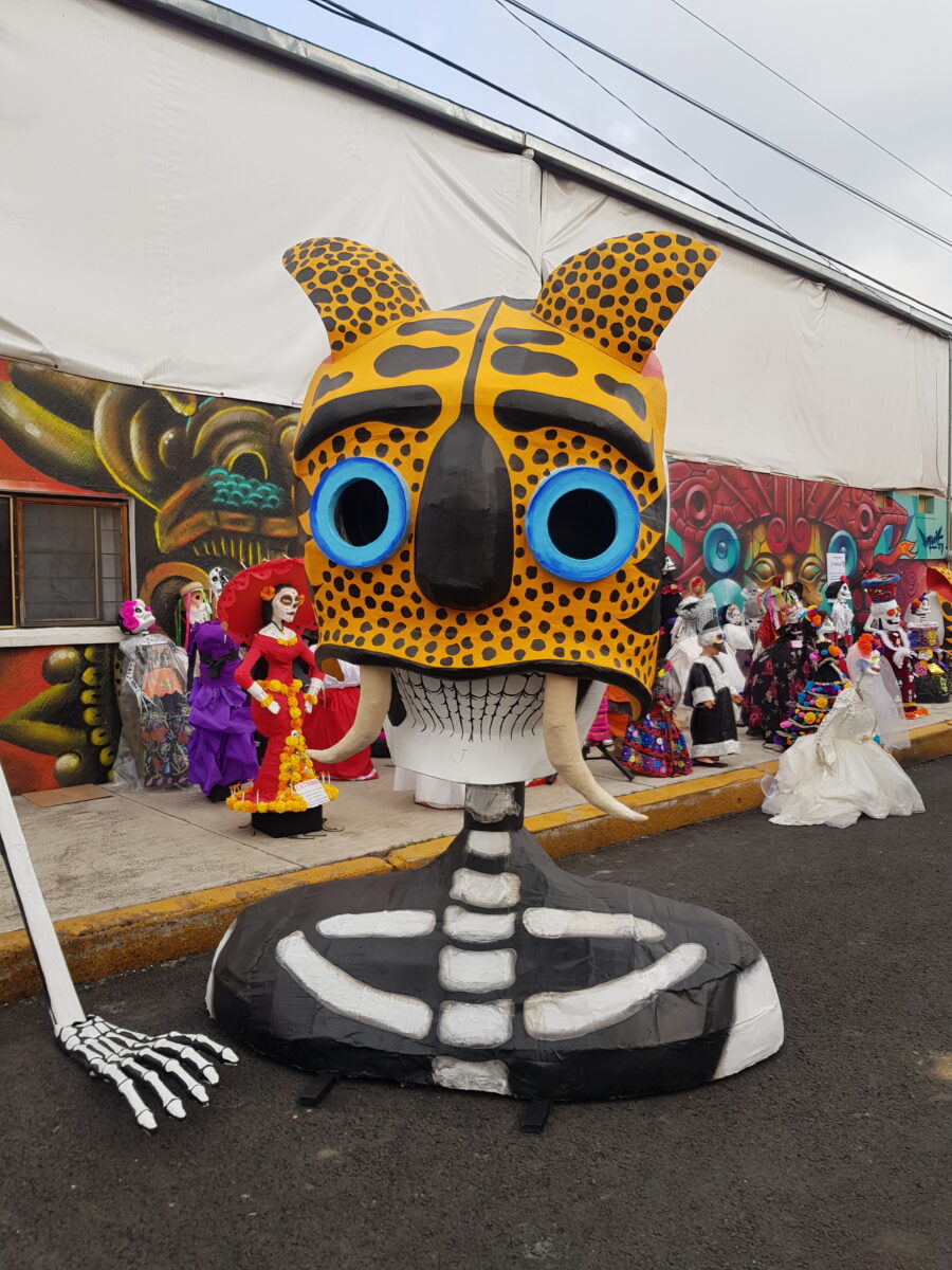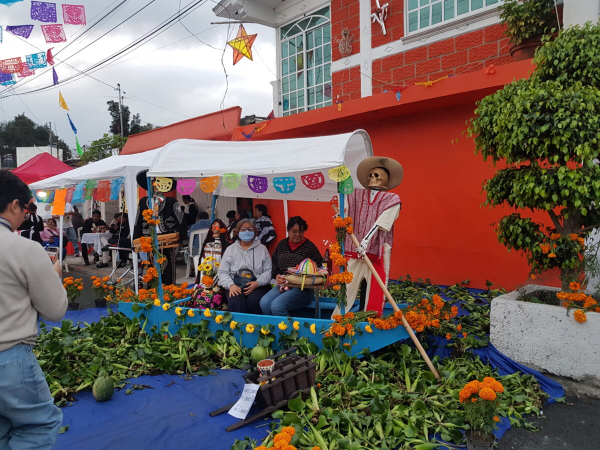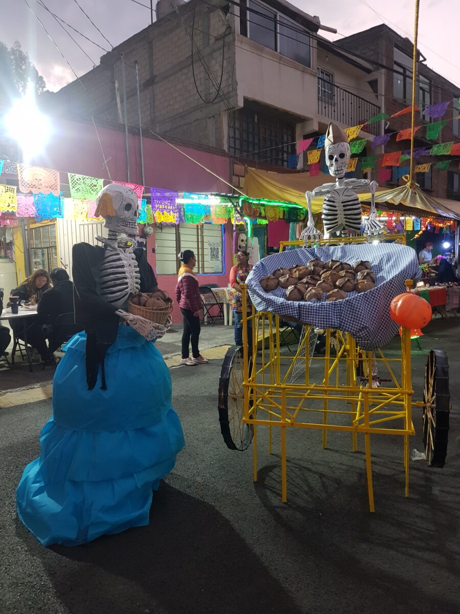 “Después de dos años de hacer calaveras de escala real y montarlas en toda la calle, cables y postes, (las) vecinas se empiezan a interesar y nos piden que les enseñemos cartonería”, explicó Medina Jaén, quien estudió en el Faro Tláhuac y que para retribuir lo ahí aprendido, comenzó a “dar talleres gratuitos” a sus “vecinos”.
