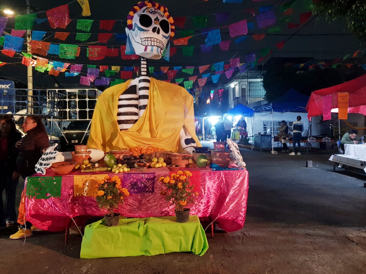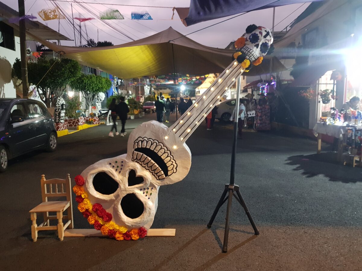 “Lleva muchos meses construir una pieza de este tamaño”, dijo Medina Jaén, pionero del proyecto que en estas fechas adorna una de las calles de la colonia Santa Cecilia , al recordar que fueron dos calaveras de cartón, colocadas en “una ofrendita muy pequeña en la banqueta”, frente a su “fachada” hace 13 años, detonaron “esta monumentalidad”.