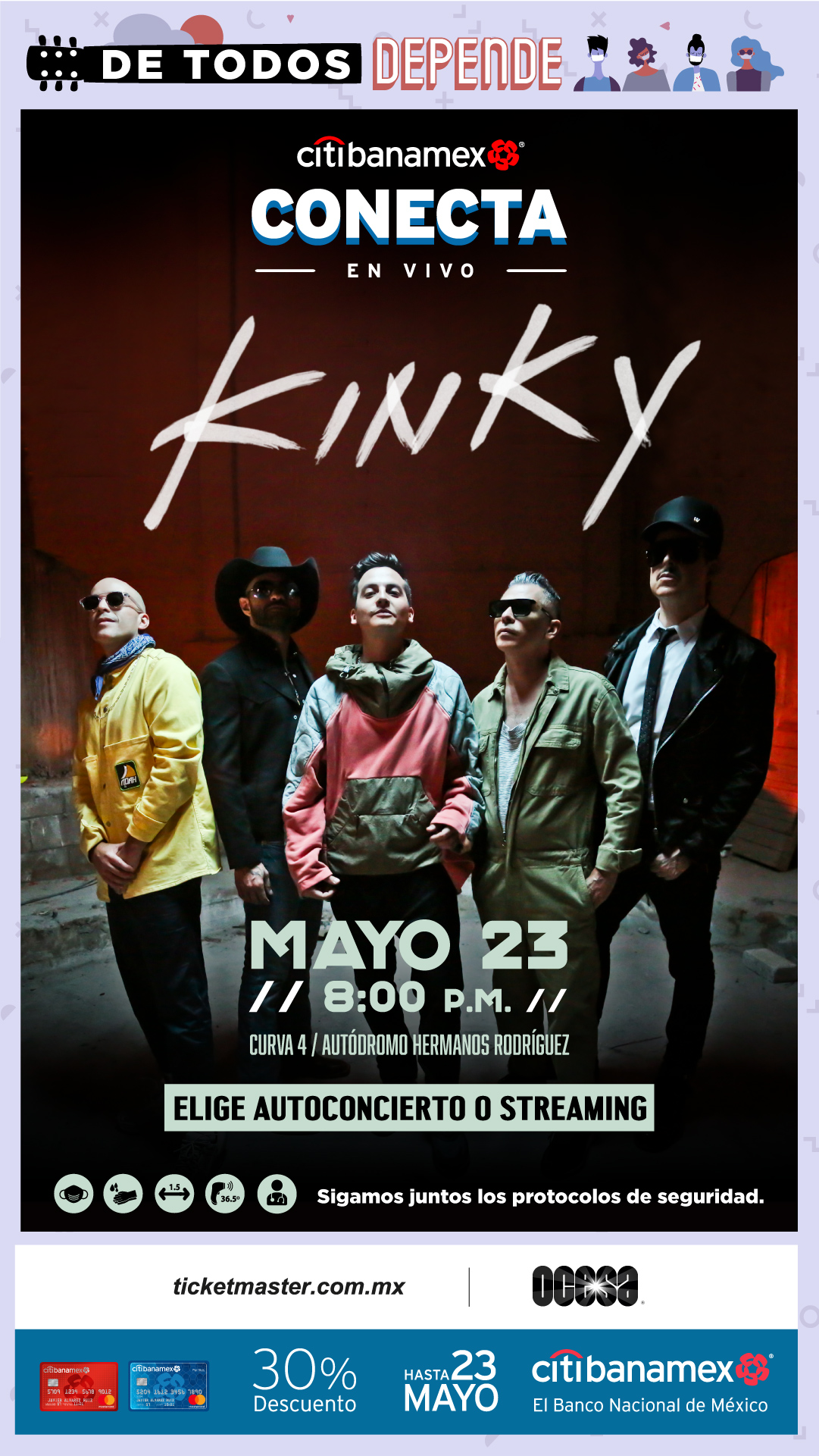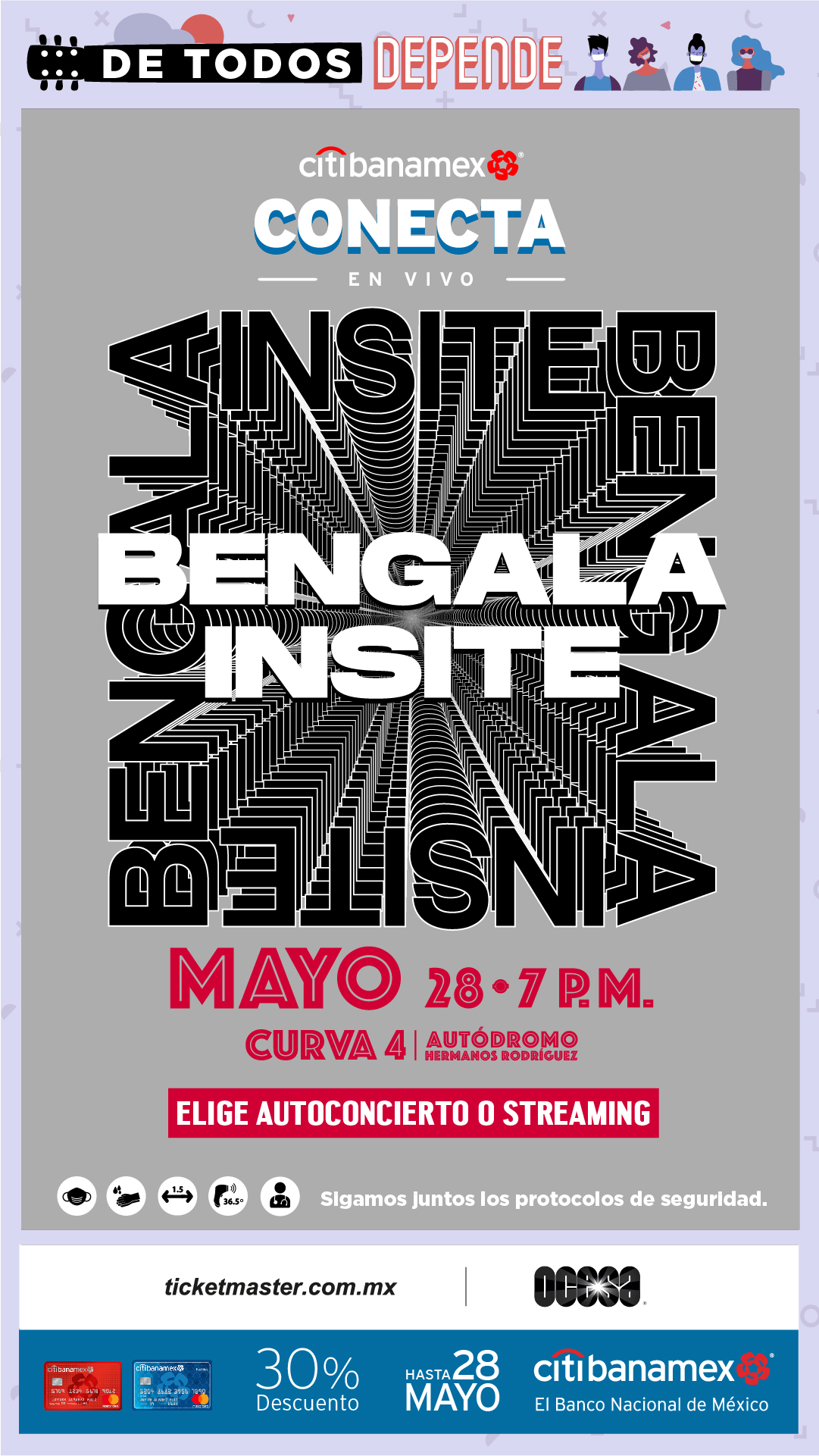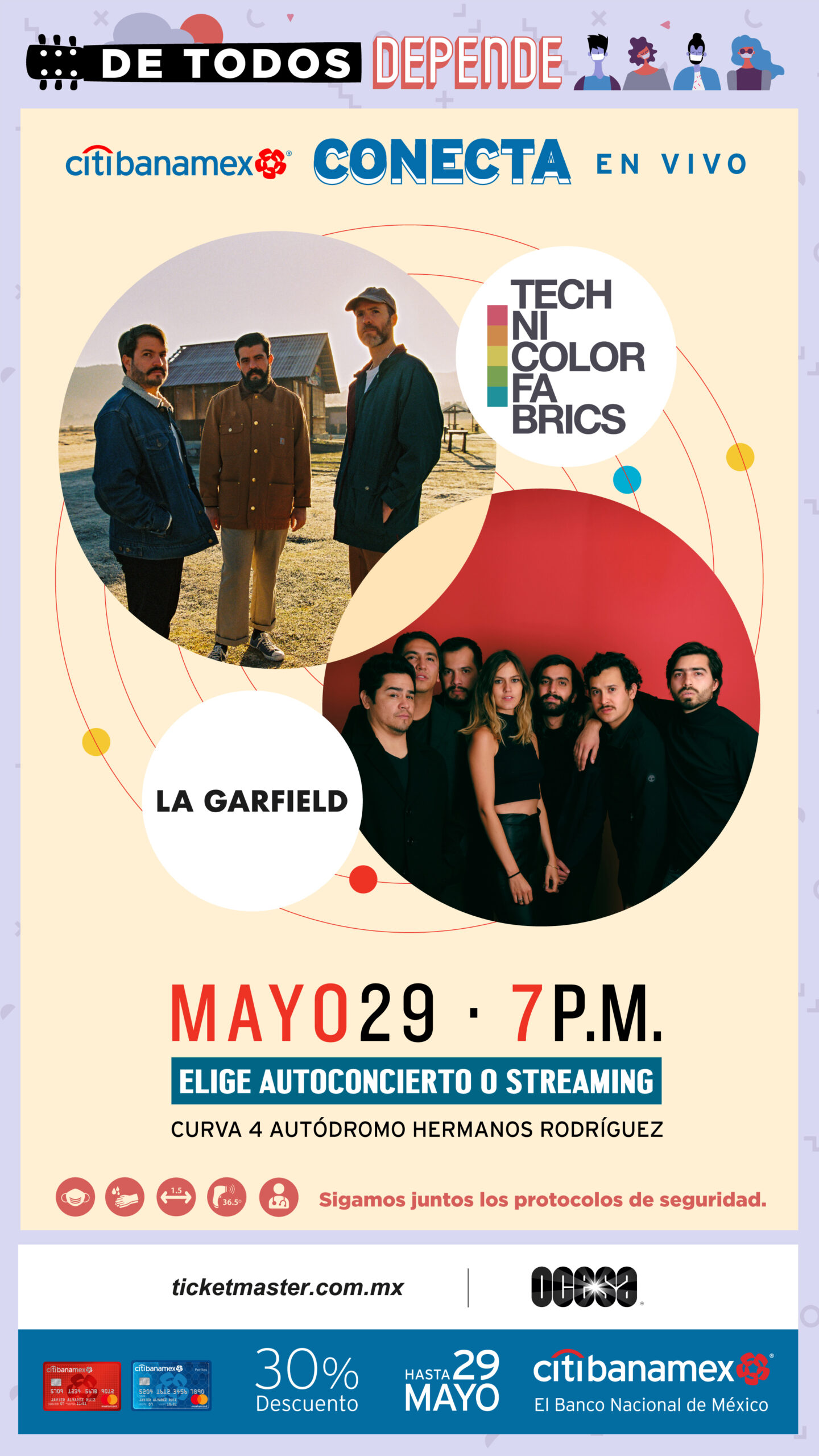Agregó que pondrá a disposición de los asistentes servicios médicos, así como información adicional en su sitio oficial y redes sociales y exhorta a continuar con los cuidados para regresar sanos al mejor entretenimiento en vivo.