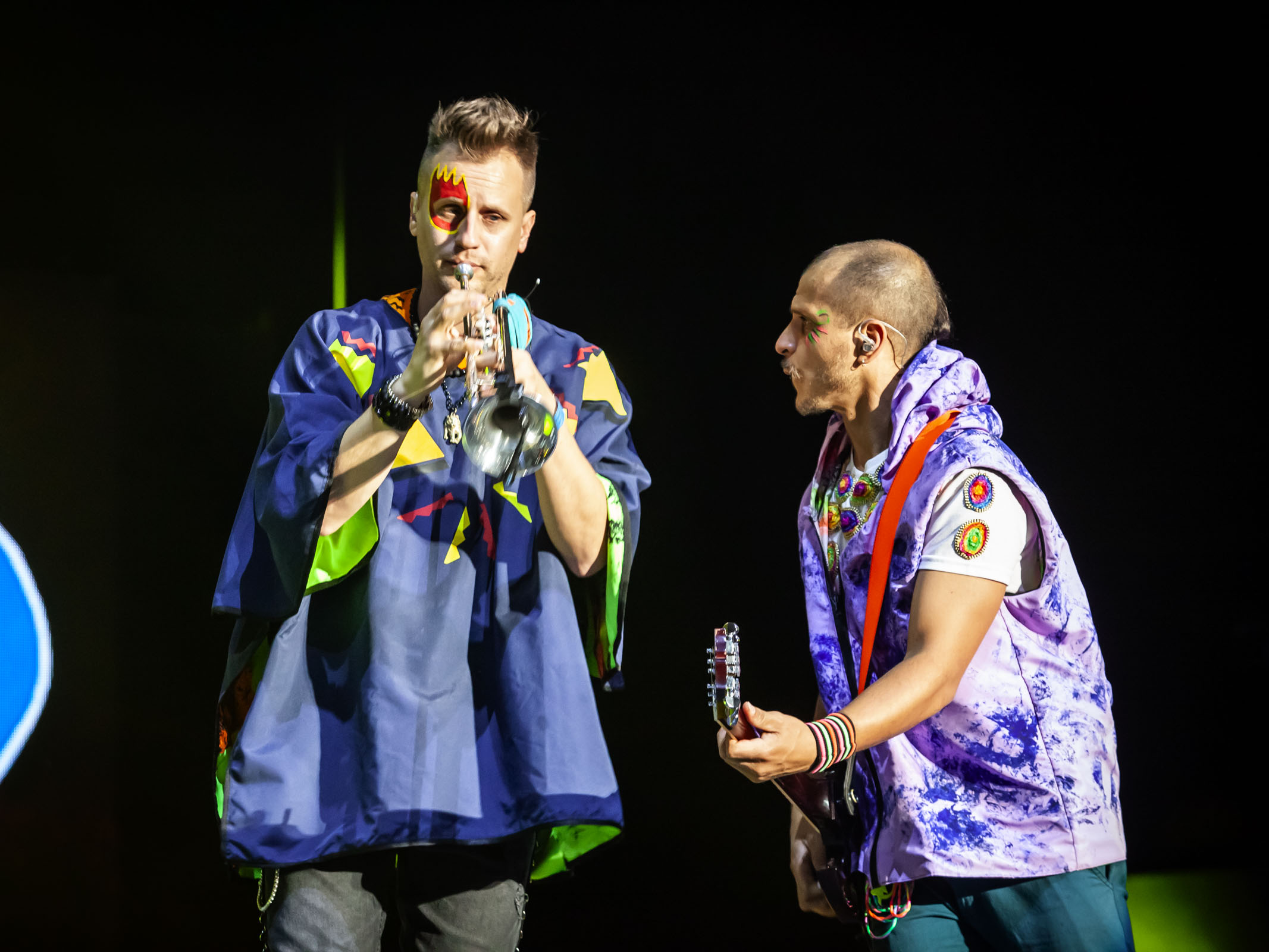 Sin mayor intervención que la música, el numeroso grupo sedujo a “chicos y grandes” con Frijoles, tema en el que aprovecharon para agradecer, en voz de Pampiglione, por “las banderas, las pelucas, la pintura. Hoy es una reunión de más de 10 mil payasos”, dijo, mientras se tomaban selfies desde el escenario tratando de que el público saliera a cuadro y viceversa, prestándose para que los asistentes de las primeras filas hicieran lo propio.