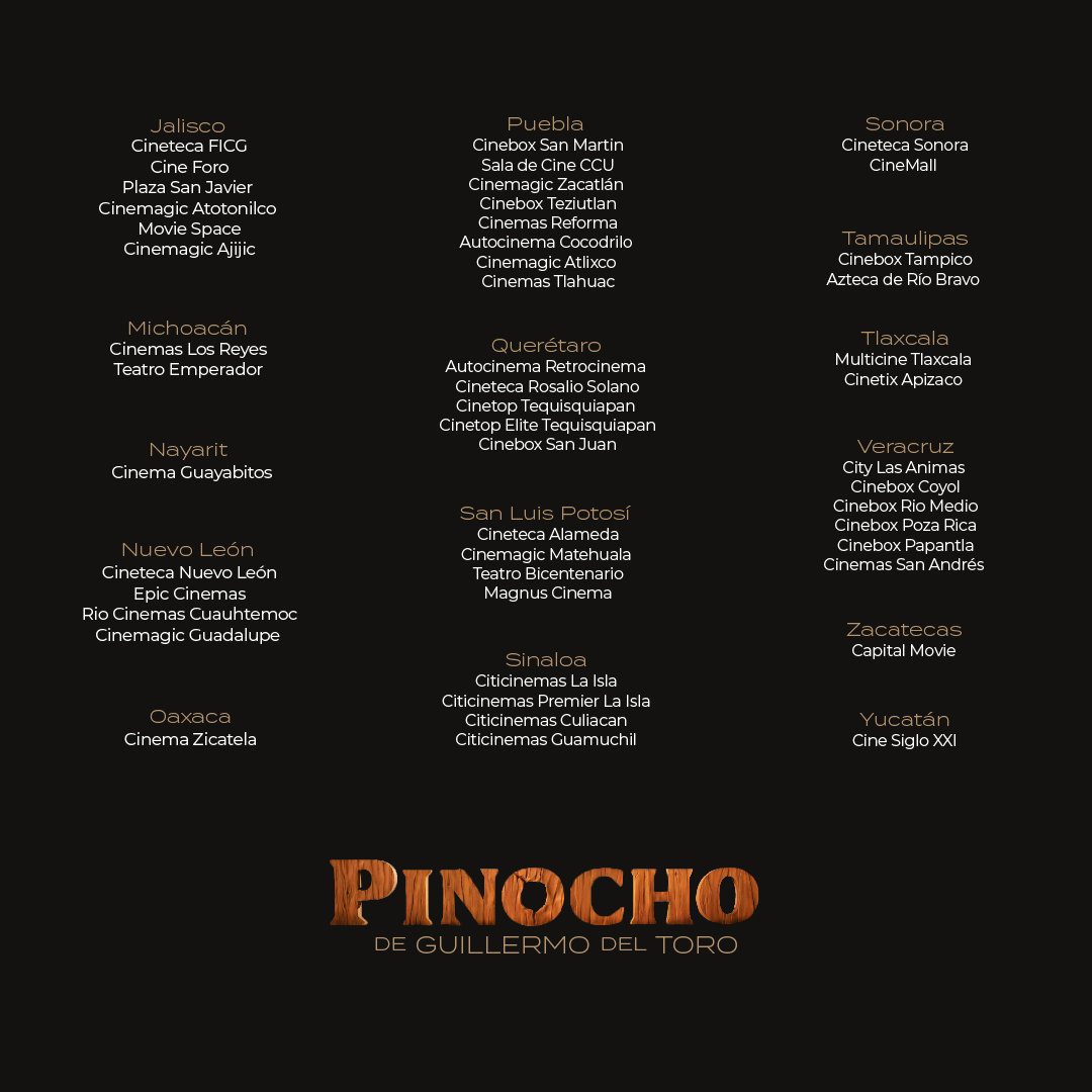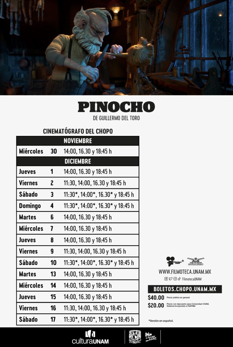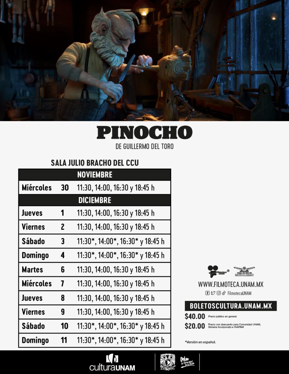Actualización. La Universidad Nacional Autónoma de México (UNAM) se suma a la proyección de la nueva versión de Pinocho, el cuento clásico de Carlo Collodi, tiene una nueva versión: un musical animado realizado en ‘stop motion’ dirigido por el cineasta mexicano Guillermo del Toro y Mark Gustafson.
