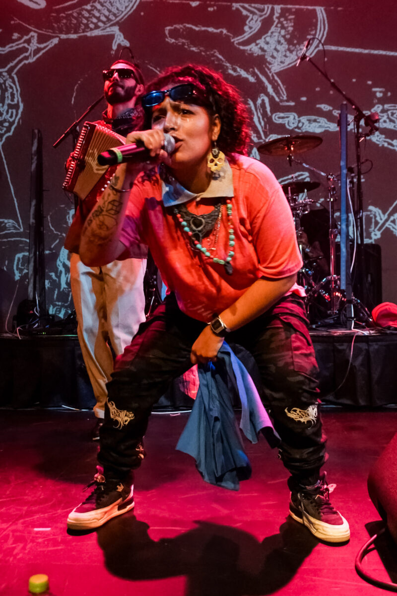 Enseguida, la Chata y el Chico Migraña -ésta junto a la rapera guanajuatense La Gallo— hicieron su aparición en un Lunario desbordado, que respondió ante los invitados con palmas. Entonces, el slam se apoderó del frente del escenario, momento que dejó claro por qué la Cumbia Is The New Punk.