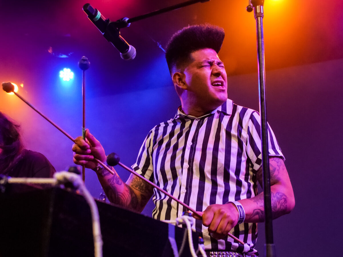 - Jesús Ángel Gama, Kacho, toca la marimba en el concierto de Son Rompe Pera en el Lunario, el pasado 22 de abril de 2023. Foto José Jorge Carreón, cortesía Ocesa