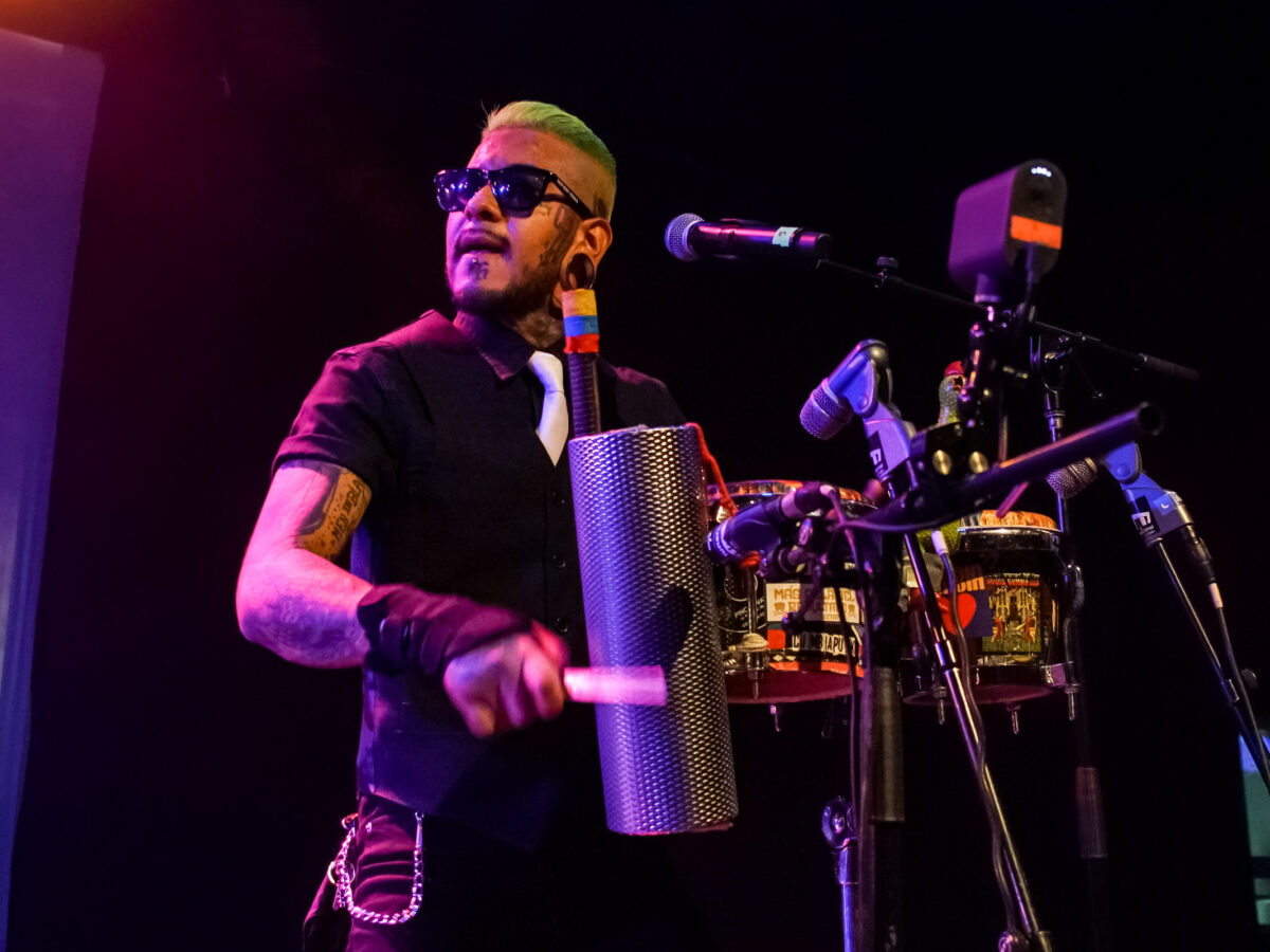- Murfy percusionista de Son Rompe Pera durante su concierto a finales de abril en la Ciudad de México. Fotos José Jorge Carreón, cortesía Ocesa