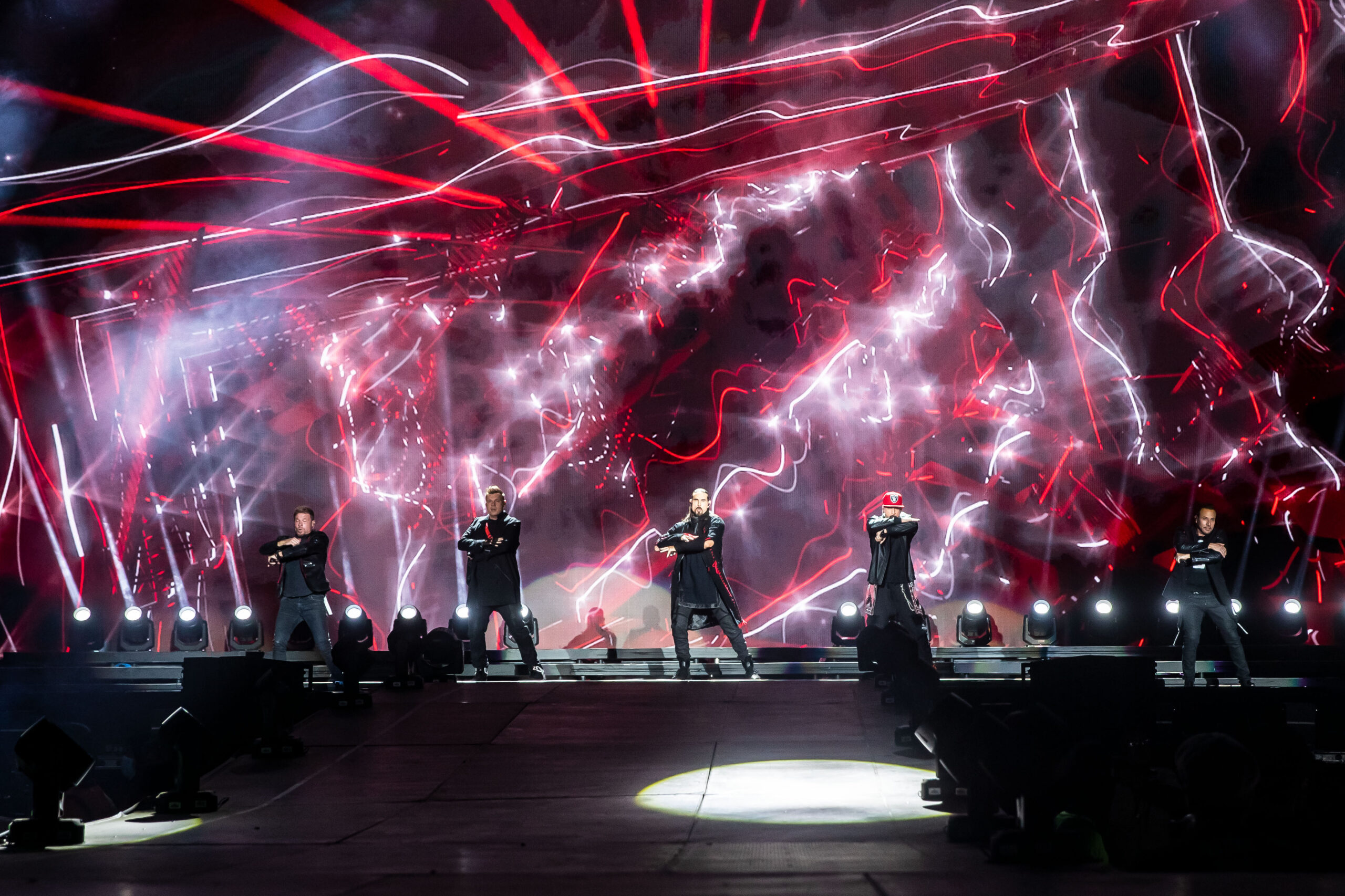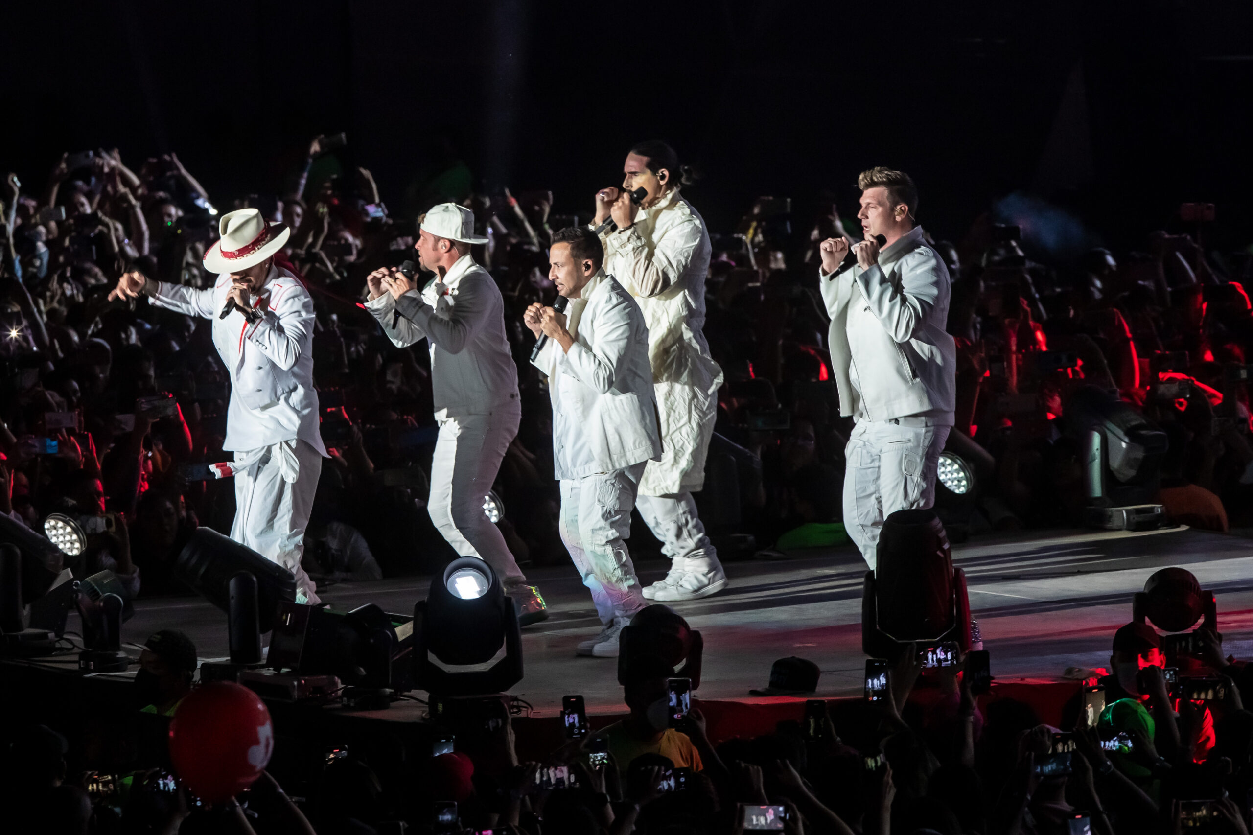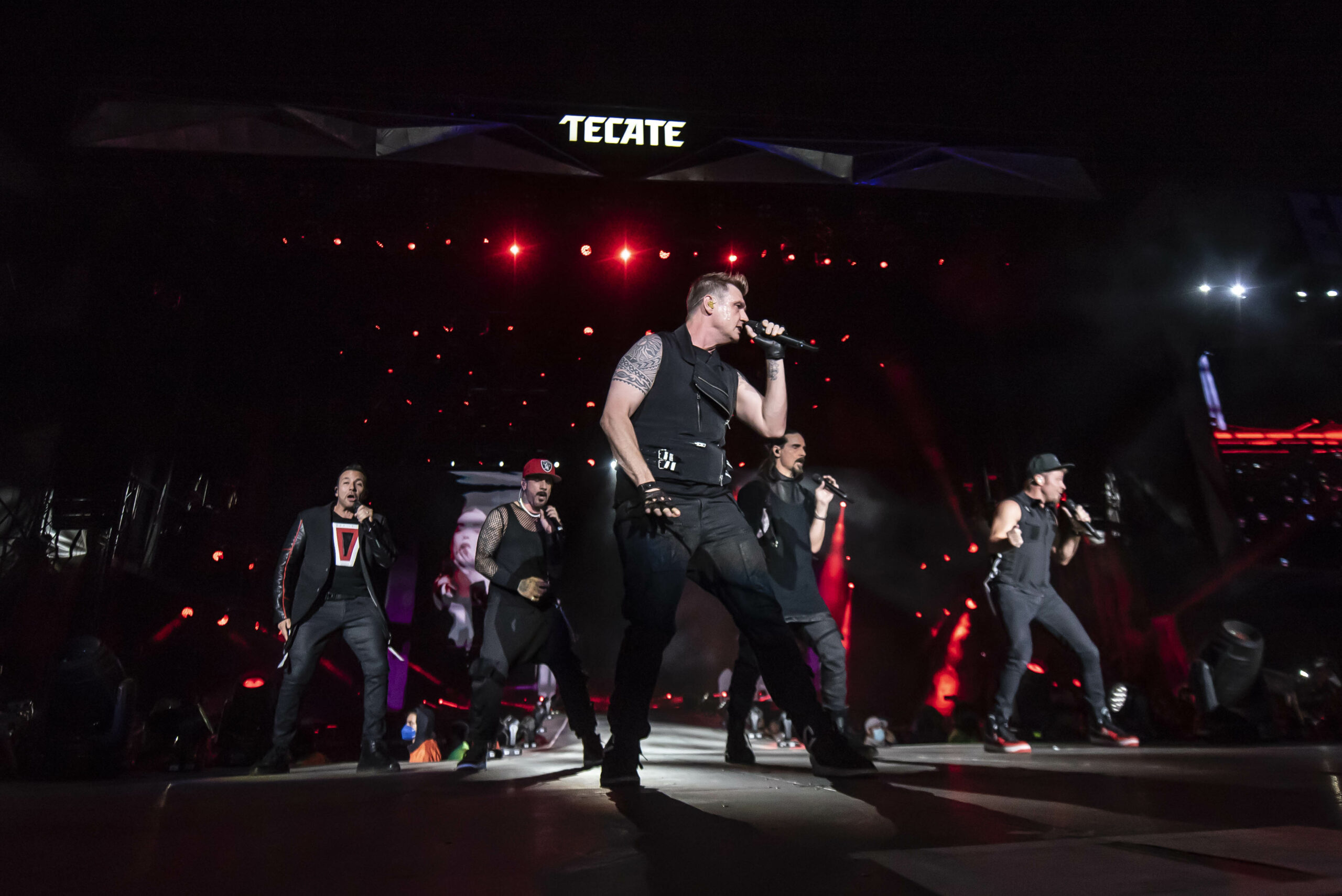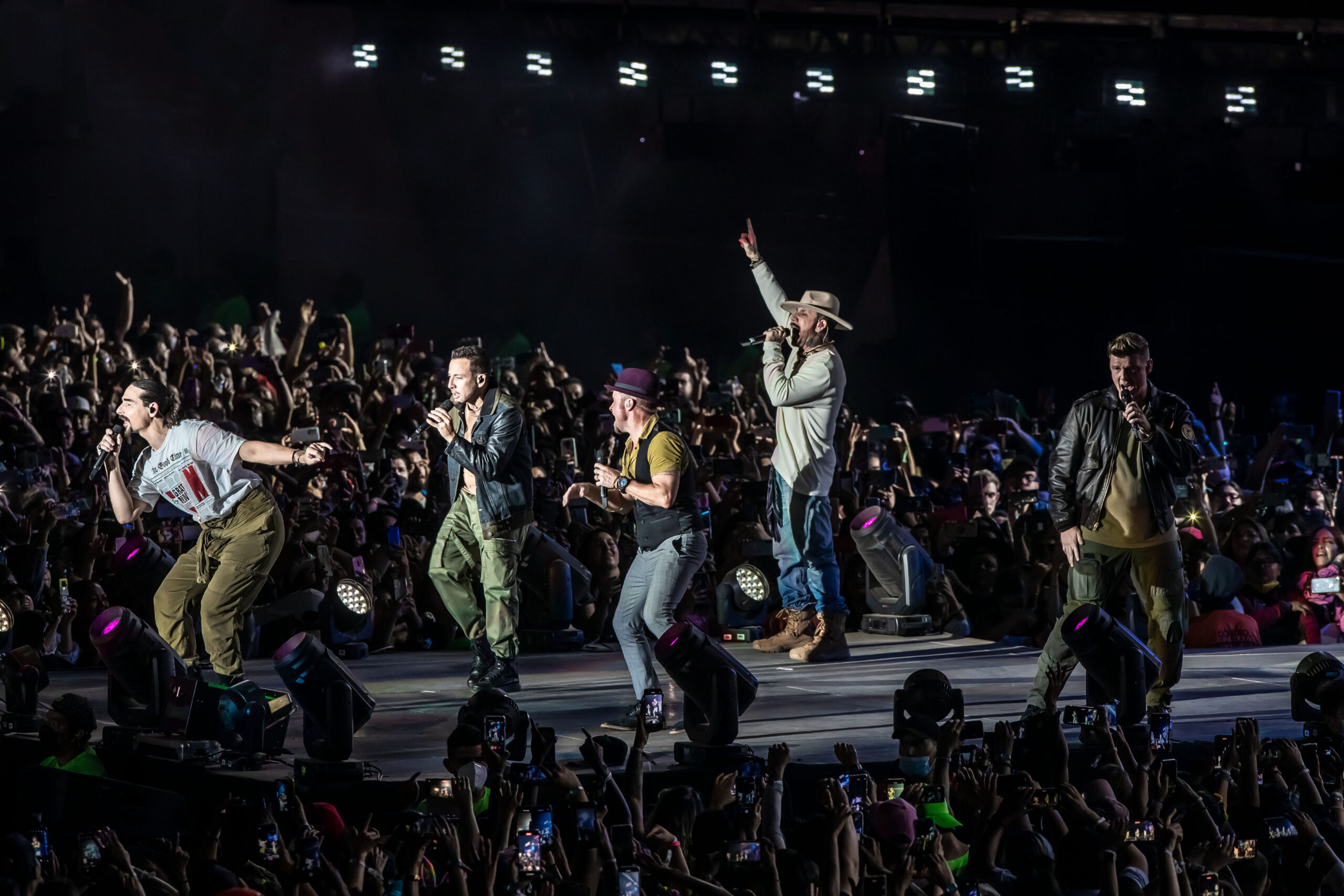 En contraste, la noche anterior, la boyband BackStreet Boys, que celebra sus 29 años de trayectoria, también teletransportó a su audiencia -alrededor de 40 mil personas- a la última década del siglo pasado, desde el mismo escenario, con su DNA Tour, el cual inició con 16 minutos de retraso con Everyone, detalle que saldó con más de una treintena de temas para beneplácito de sus seguidoras y seguidores. “Mexico, are you ready tonight?”, preguntaron antes de arrancar el concierto con I Wanna Be With You en la que el quinteto, integrado por A.J. McLean, Brian Littrell, Nick Carter, Howie Dorough y Kevin Richardson, mostró su habilidad en las coreografías que los hicieron famosos.