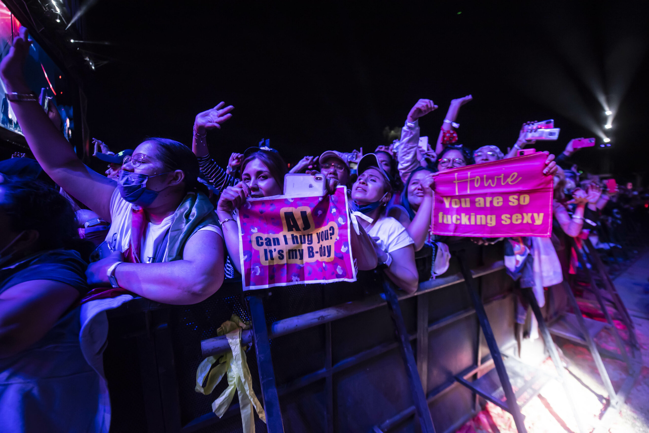 Mientras el concierto transcurría, el entusiasmo iba in crescendo. “Esto es absolutamente increíble. Estamos agradecidos de tenerlos como fans” y “Besos, besos, besos. Te amo. Esto es surreal. Estamos de regreso. Hay mucho amor para nosotros aquí”, fueron algunas de las expresiones que los integrantes del grupo oriundo de Orlando prodigaron a la multitud. Además de detalles como firmar playeras en pleno show, como lo hizo Kevin poco antes de interpretar No Place, durante la cual proyectaron el video en el que aparecen las familias de los integrantes. “Es la primera vez”, que hacen algo así, declararon.