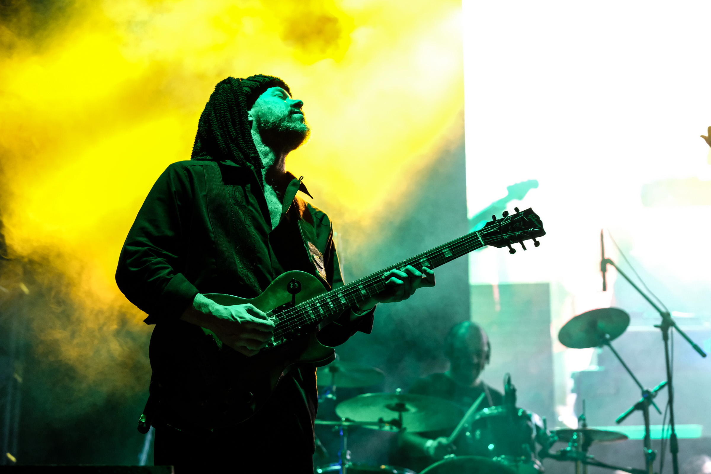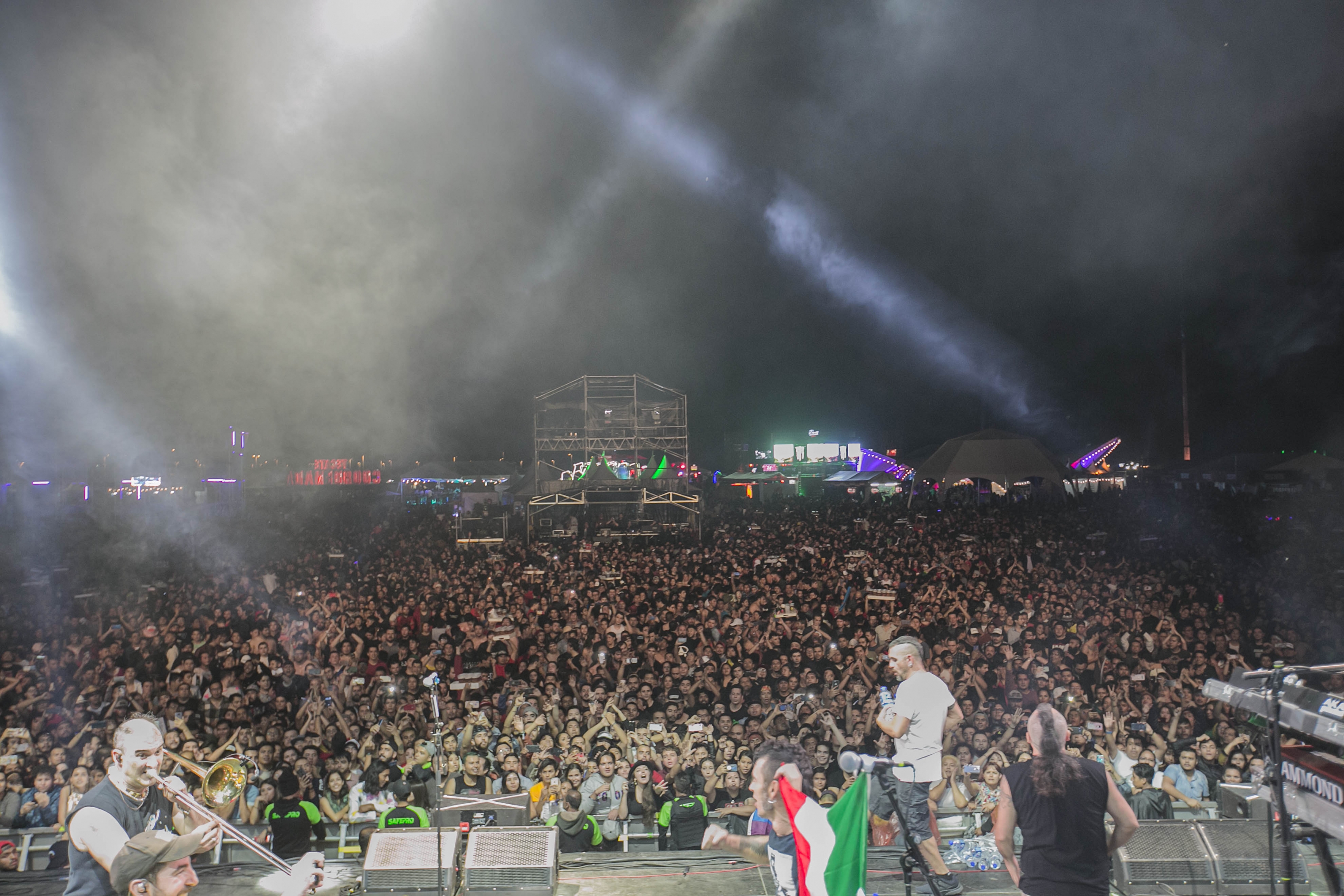 “¡No sufras, no sufras! ¡Qué bonita noche, Guadalajara!, ¿Qué bonita gente! ¡Alegría! ¡Vamos!”, dijo el vocalista del numeroso grupo que también visitará la Ciudad de México el próximo 25 de enero, lo que fue correspondido con saltos desde la pista, donde la lluvia casi había desaparecido. Así llegó el momento perfecto para cantar Legalización, a la que siguió Crimen Sollicitationis y Niño Soldado, entre muchas más.