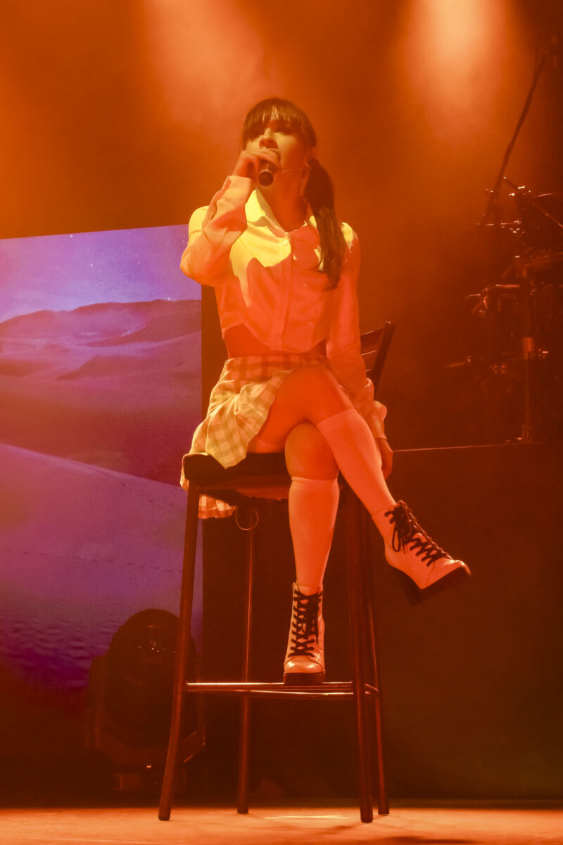 La guitarrista agradeció por “los Doctor Simis”, que aterrizaron en el escenario y que rápidamente fueron retirados por su staff. “Honestamente, muchísimas gracias, qué lindos. No los podemos recibir ahorita, pero va a haber alguien enfrente del merch recibiéndolos al final. Nos encantaría tenerlos. ¡Que buen detalle!”