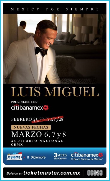 Para mayor información sobre el artista, su nuevo disco y la gira ve a http://www.luismigueloficial.com/, www.facebook.com/luismiguelofficial/ y @LMXLM; si quieres más datos sobre fechas y costos de conciertos ve a www.ticketmaster.com.mx.