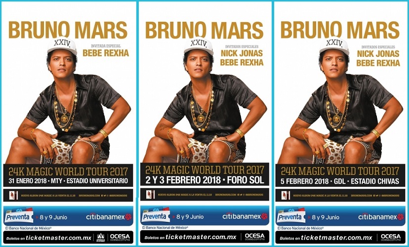 El artista multiplatino , “uno de los mejores showmen de la música actual”, regresará a México a principios de 2018, para presentar 24k Magic World Tour, su más reciente álbum, con el que pisará las ciudades de Monterrey, México y Guadalajara, respectivamente……