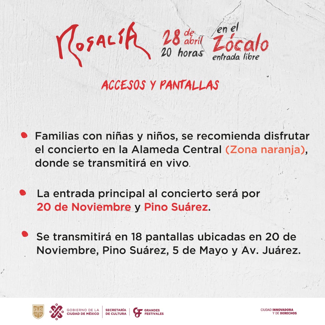 Actualización. Autoridades de la Ciudad de México emitieron una serie de recomendaciones a seguir por quienes acudan este viernes 28 de abril al concierto que Rosalía ofrecerá, a partir de las 20:00 horas, en el Zócalo, el cual será el broche de oro para su exitoso Motomami World Tour por el continente americano.