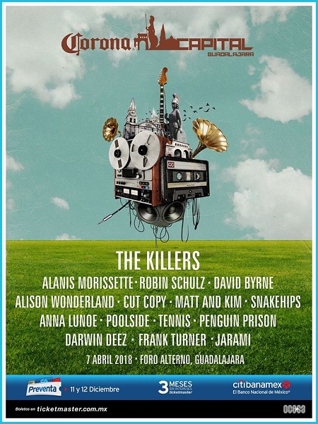Para su debut en la Perla Tapatía, el Corona Capital presenta un cartel encabezado por The Killers, banda oriunda de Las Vegas que promueve su quinto disco de estudio titulado Wonderful Wonderful; así como la cantante ganadora de siete Grammy Alanis Morissette, cuyo álbum más reciente fue lanzado en 2012 bajo el título de Havoc and Bright Lights; y el escocés David Byrne (ex Talking Heads), quien entre sus materiales más recientes se encuentra Love This Giant (2012), en colaboración con Annie Clark, mejor conocida como St. Vincent.