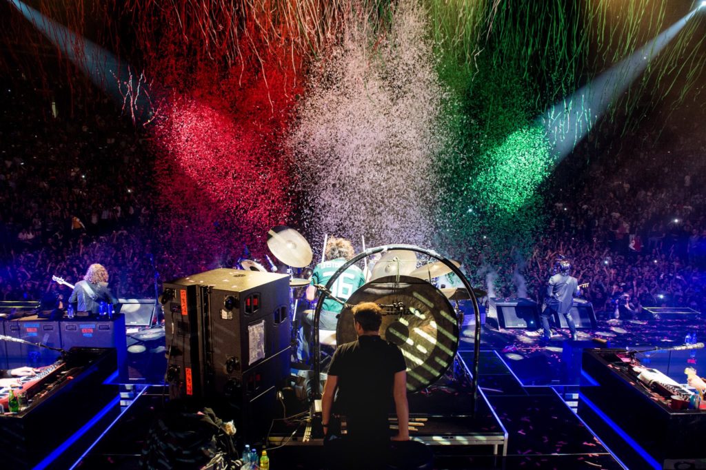 “Todos tenemos un plan… o dos… que nos tiran al suelo”, dijo el vocalista -en inglés- a modo de introducción de Tyson vs Douglas; después otro de los éxitos: A dustland Fairytale. “¿Se saben esta?” y de inmediato siguió Runaways; y de vuelta a la primera década del siglo XXI con Read My Mind. “Mexico City, muchas gracias!” gritó Flowers antes de iniciar All These Things I’ve Done, en la que nuevamente los miles le acompañaron en los coros, mientras el confeti tricolor cubría la primera parte del inmueble. “Mira esos colores… Gracias México… Te amo”, fue la leyenda con la que la banda acompañó la siguiente foto en su cuenta en Facebook.